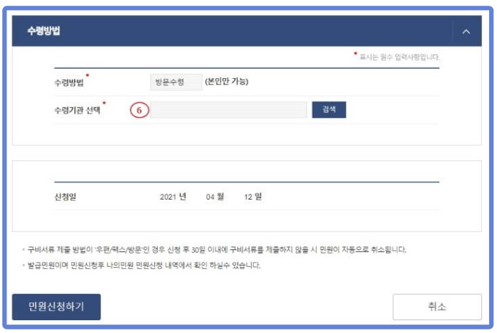 방문수령의 경우에는 대리인이 수령할 수도 있습니다. 대리인 자격은 등본상 세대원, 직계혈족(부모, 배우자, 자녀)입니다. 주의할 점은 형제자매의 경우는 직계혈족에 들어가지 않아 등본상 같이 주소가 되어 있는 경우(등본상 세대원)만 대리로 수령할 수 있습니다.