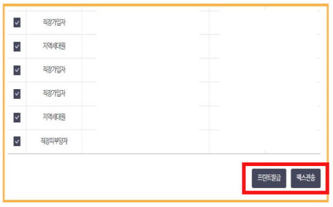 👉화면 하단의 프린트 발급 또는 팩스전송을 선택합니다. 파일로 다운로드 하고 싶은 경우에도 프린트 발급을 클릭 후 PDF파일로 저장할 수 있습니다.