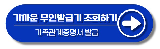 가족관계증명서 오프라인 발급도 가능합니다. 근처 주민센터 또는 무인발급기를 찾아가시면 되는데요. 지문인식이 잘 되시는 경우 무인발급기 발급을 추천드립니다. 수수료가 주민센터 방문보다 50%저렴합니다.