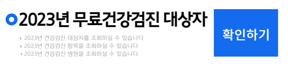 건강보험공단 메인 화면에서 로그인 하면 아래 화면과 같이 2023년 건강검진 대상 결과를 확인할 수 있습니다.