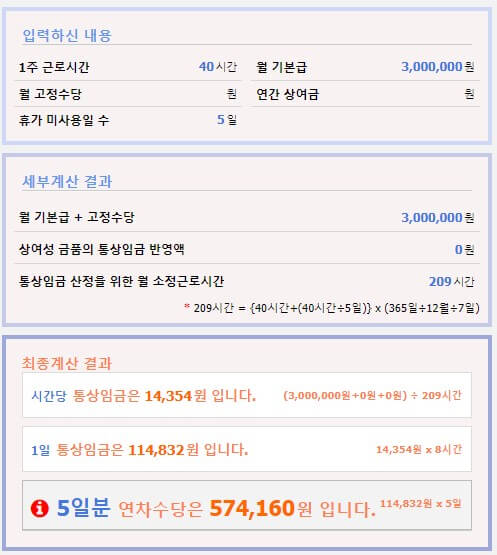 연차수당 계산기
