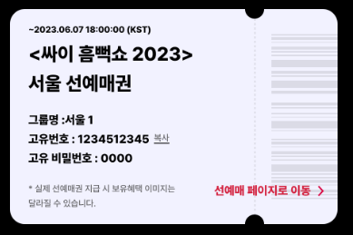 일반 예매는 23년 6월 7일(수) 20시부터 전국 티켓팅(1인 4매)이 시작됩니다. 아래링크를 통해 빠른 예매가 가능합니다.