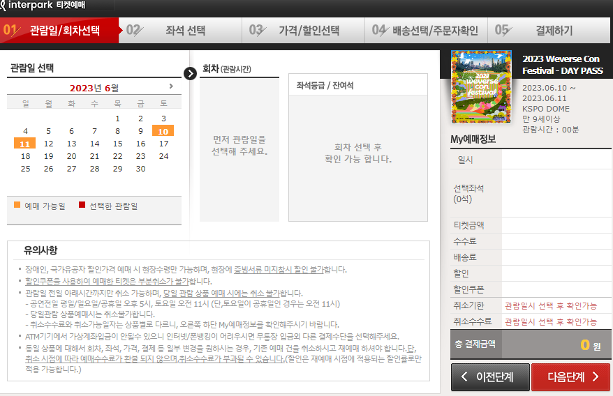 최종 결제만 하지 않는다면 진짜 공연예매가 되는 것이 아니기 때문에 결제 전단계까지만 화면을 눈에 익히고 어디를 클릭해야 하는지 연습을 반복합니다.