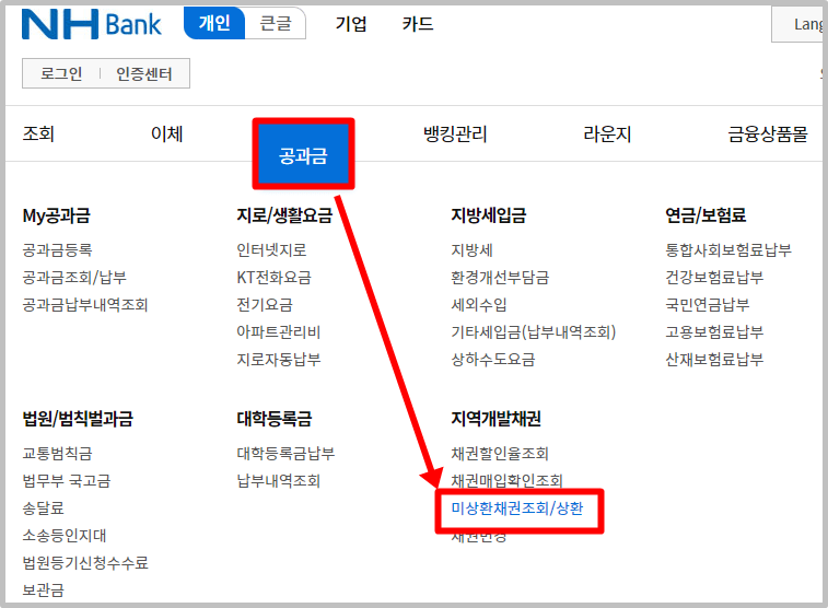 농협은행 홈페이지에 접속 후 상단 메뉴 공과금 > 지역개발채권 > 미상환채권 조회/상환 을 클릭 후 조회 및 환급 신청이 가능합니다.